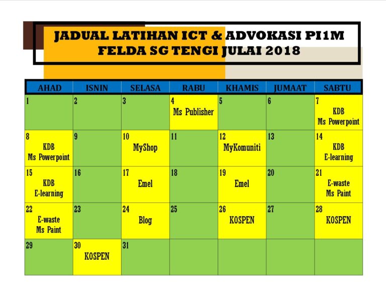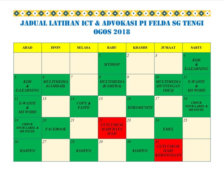 JADUAL PROGRAM BULAN OGOS 2018 TARIKH MASA PROGRAM 1 Ogos 2018 9.30 pagi Dashboard (MyShop) 4/5 Ogos 2018 9.30 pagi Klik Dengan Bijak & E-learning 6/8/10 Ogos 2018 9.30 pagi Multimedia 11/12 Ogos 2018 9.30 pagi E-waste & Ms. Word […]