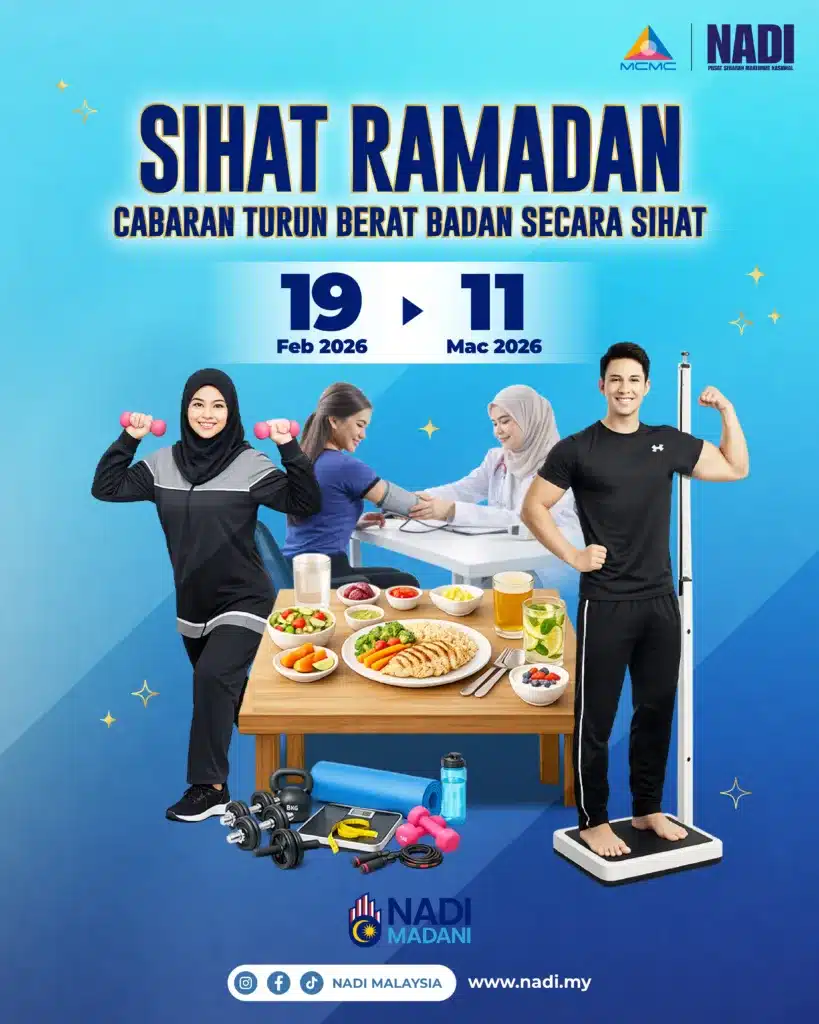 Sertai Cabaran Sihat Ramadan NADI dan mulakan perjalanan reset kesihatan anda melalui amalan pemakanan seimbang, aktiviti fizikal, serta pemantauan kesihatan sepanjang bulan Ramadan.